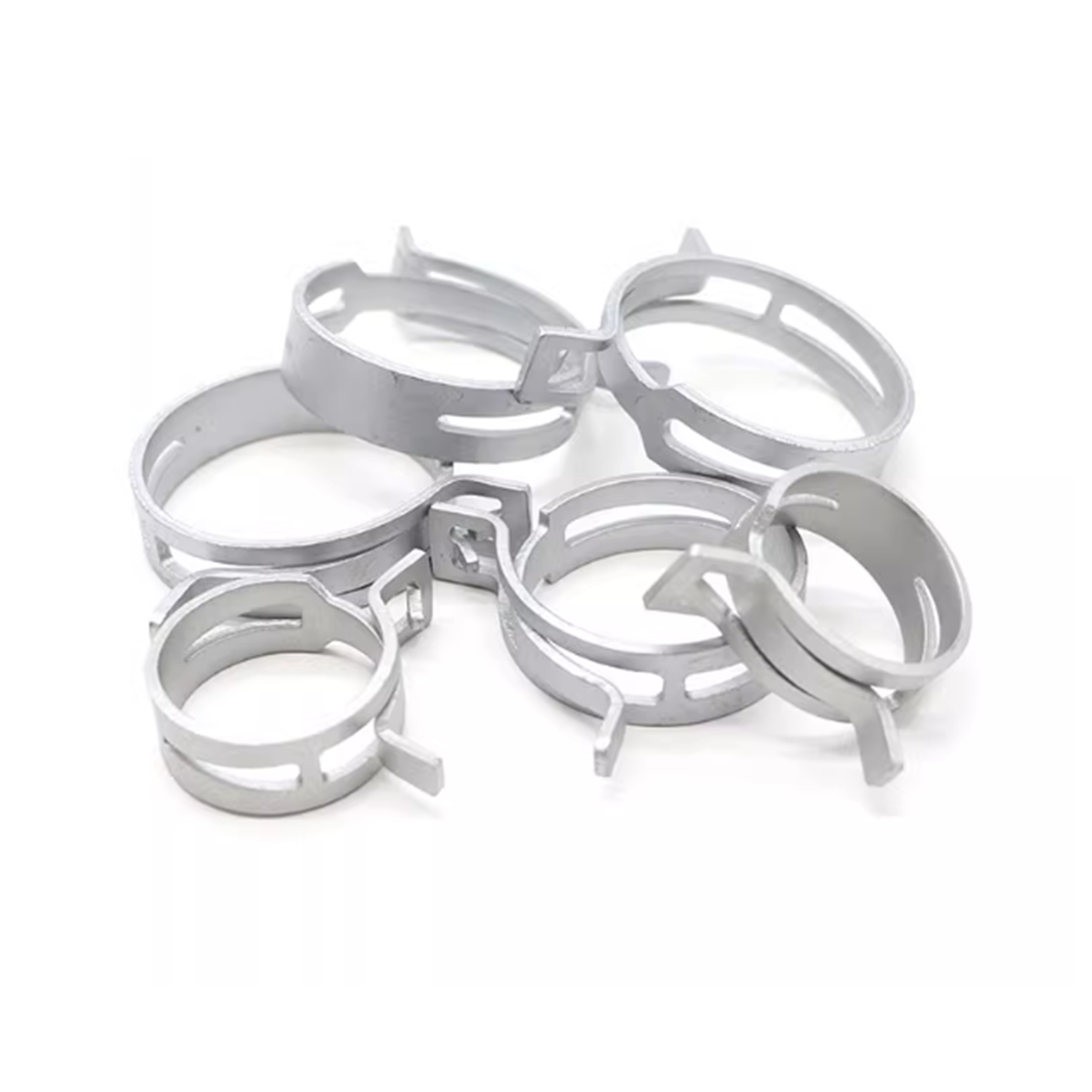 Elastic hoop is a circular fastening device made of high-quality stainless steel. It features a unique overlapping design that ensures consistent radial pressure and excellent elasticity. This clamp is widely used for securing hoses, pipes, and cables in various industrial applications due to its durability and reliable performance.