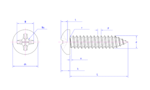 Phillips pan head self-tapping screw DIN7981. Designed for efficient drive engagement and secure fastening into various materials. The pan head offers a flush finish while the sharp point enables easy penetration. Ideal for assembly applications requiring reliable thread-forming capability.