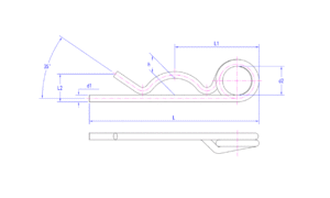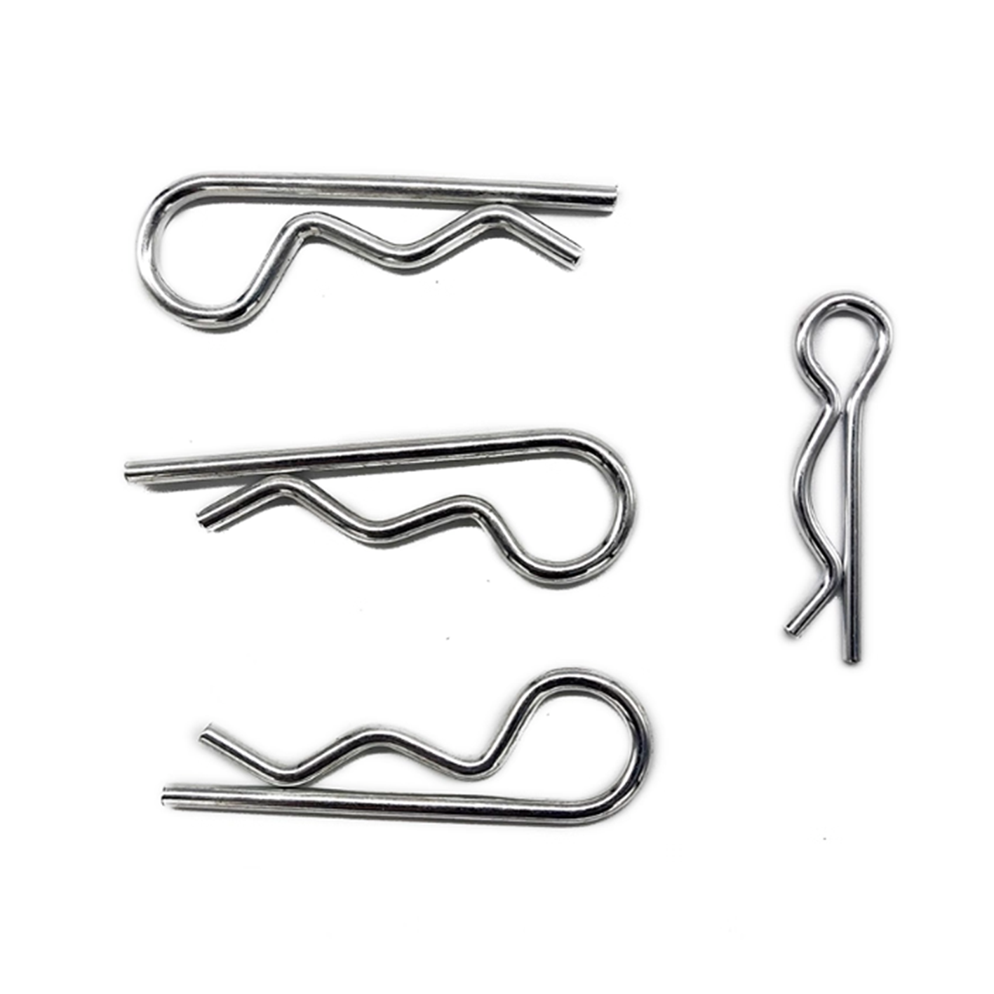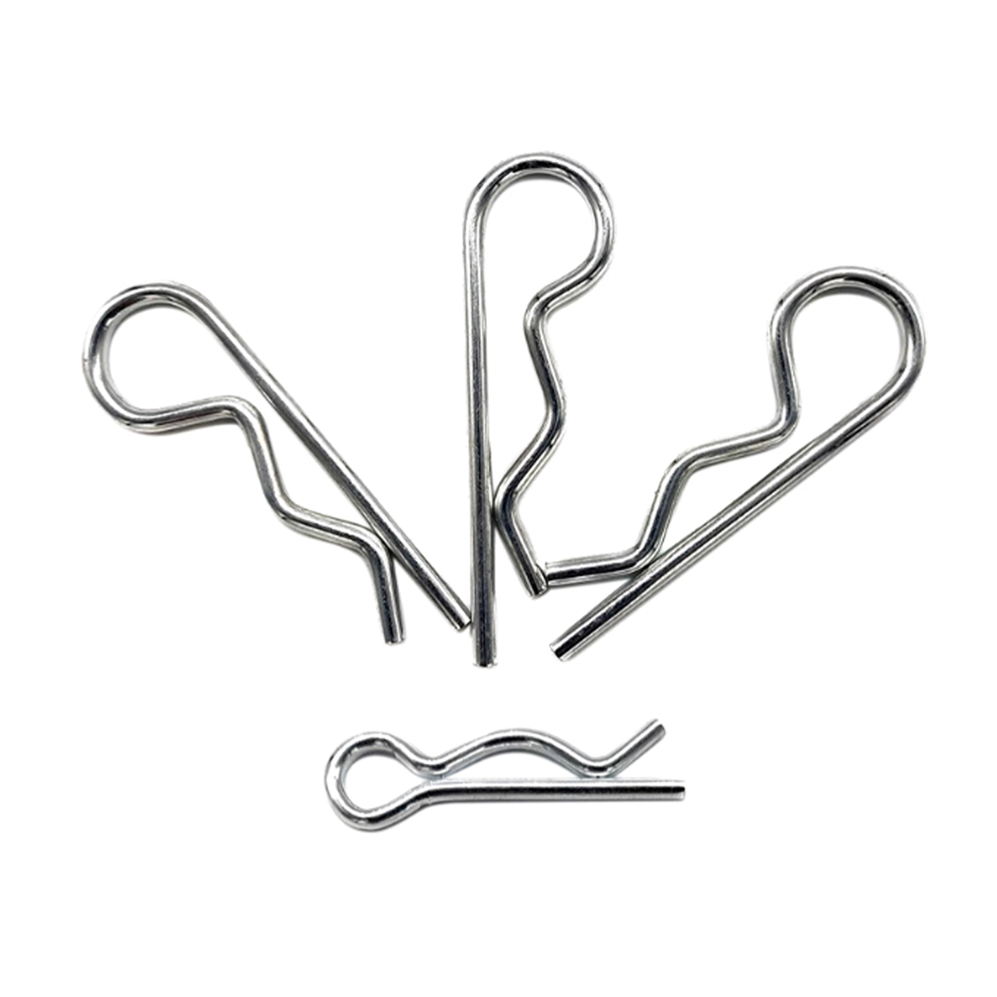 DIN 11024 specifies R-clips, commonly called hairpin cotters or hitch pin clips. These spring steel fasteners feature a distinctive “R” shape and open ends for quick insertion and removal from a drilled hole or groove, securely retaining pins and axles.