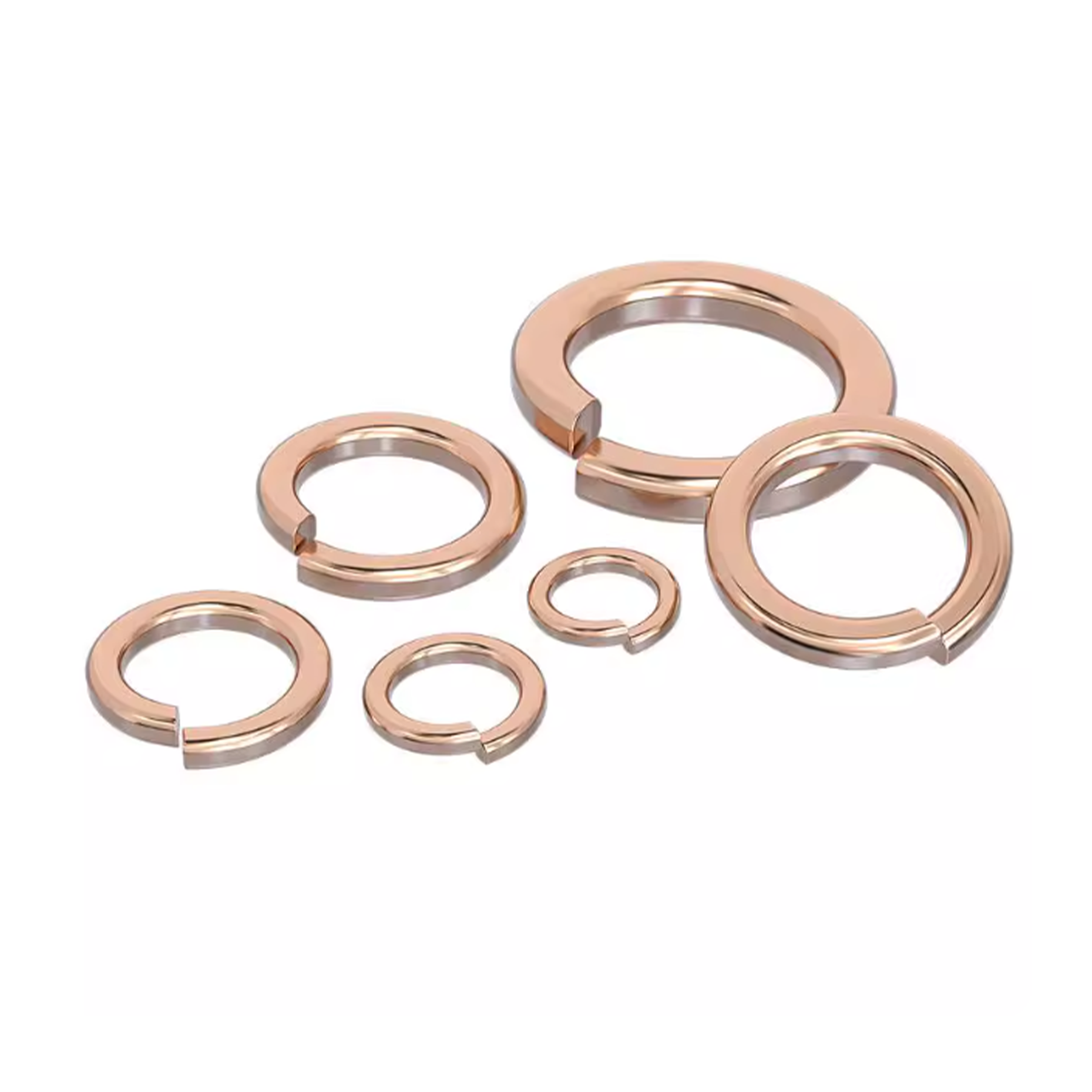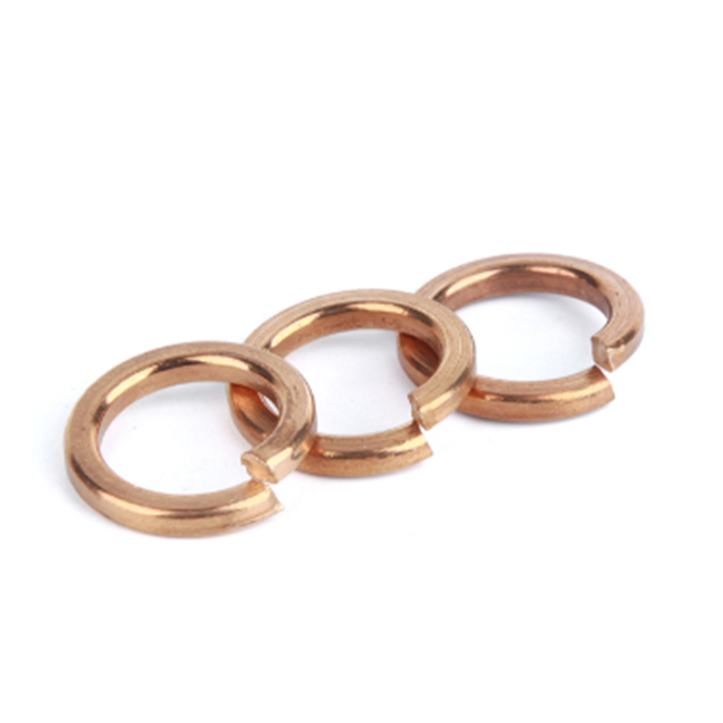 DIN 127 red copper spring washers, made from high-conductivity copper alloy, provide both electrical grounding and vibration resistance. Their split-ring design ensures a maintained preload in bolted connections, making them essential for electrical assemblies and corrosion-resistant fastening systems.