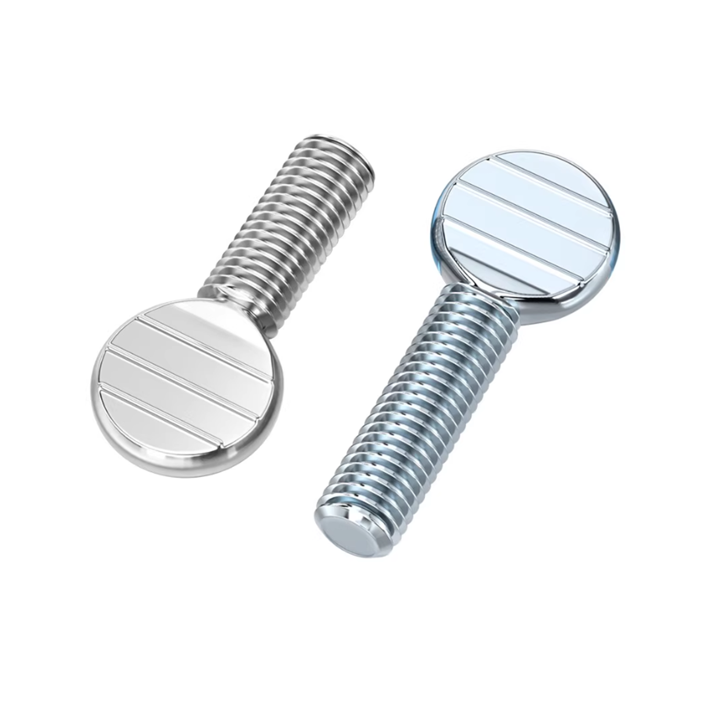 A thumb screw has a specially designed head that makes it easy to turn with one hand and ideal for use on pats that are frequently moved such as an access panel. They feature protruding wings or a knurled head for enhanced grip, enabling quick assembly, disassembly, and adjustment in applications where frequent access is needed.